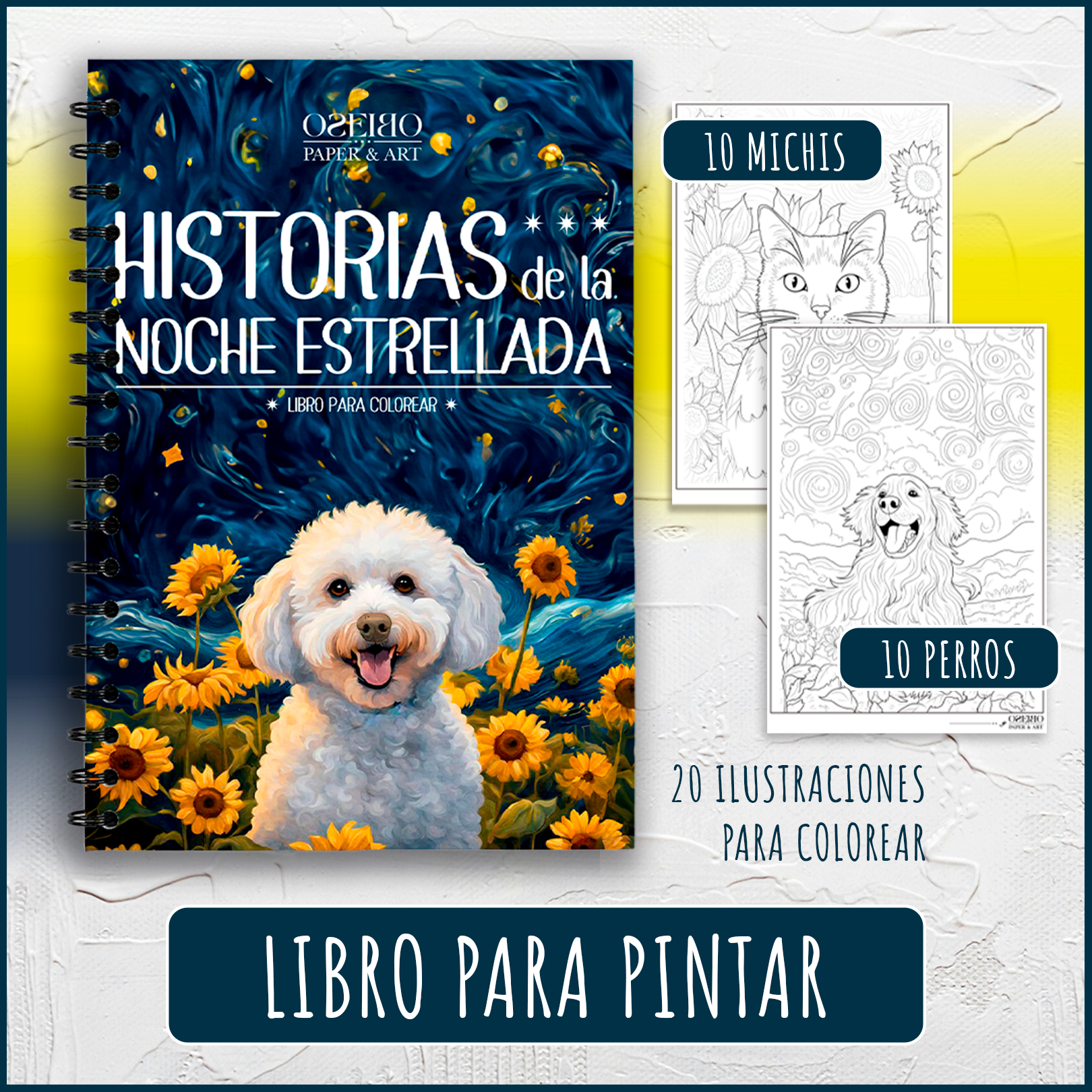 • Interior: 20 ilustraciones originales de OseiboArt (10 ilustraciones de perros y 10
