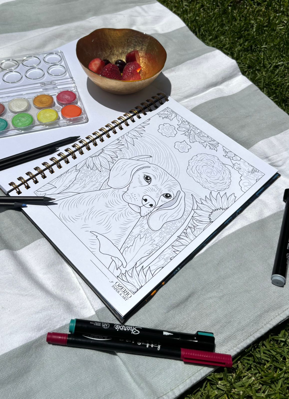 • Papel interior: Papel bond blanco de 220 g – Apto para acuarelas, plumones,
