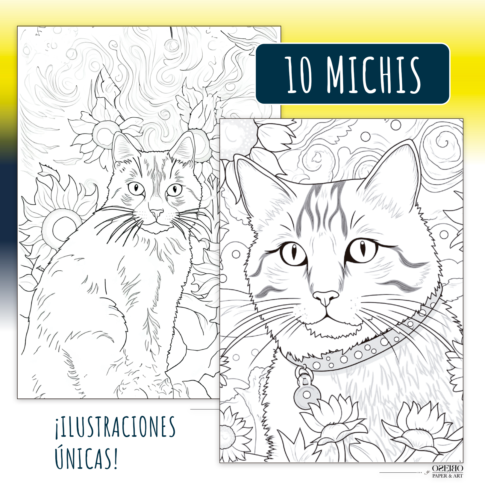 ilustraciones de gatos) – Una ilustración por hoja (impresión por una sola cara) –
